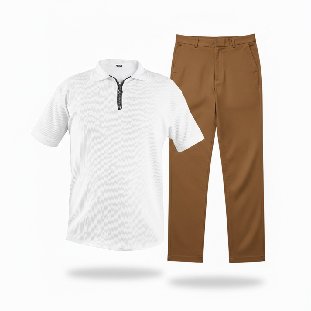 اگر به‌دنبال یک ست مردانه راحت، خوش‌فرم و کاربردی برای استفاده روزمره، محل کار یا دورهمی هستید، ست مدل Rayan با ترکیب تیشرت نیم‌زیپ و شلوار بنگال کش، انتخابی ایده‌آل برای استایل اسپرت و نیمه‌رسمی است. این ست با طراحی مدرن، پارچه باکیفیت و فیت استاندارد، علاوه‌بر ظاهر شیک، راحتی کامل در طول روز را فراهم می‌کند و به‌راحتی با انواع کفش اسپرت و روزمره ست می‌شود.
